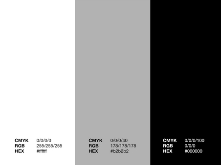 Die sogenannten Sekundärfarben ergänzen das Farbspektrum des Erscheinungsbildes. Wie bei den Primärfarben erfolgt die Anwendung der Sekundärfarben nach genau definierten Vorgaben. Zum Spektrum der Sekundärfarben gehören: Weiß, Schwarz und Grau.