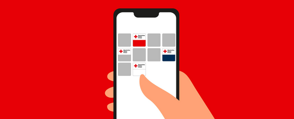 Der Grundaufbau der DRK-App-Thumbnails ist konsistent strukturiert und folgt einem Basisaufbau zur Hierarchisierung und Wiedererkennung. Dennoch bietet dieser Aufbau genug Spielraum für eine Individualisierung.