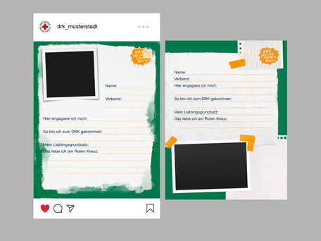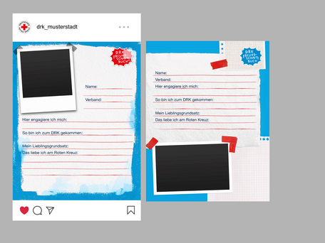 Für die Umsetzung stehen in Canva je zwei verschiedene Designs in DRK-Rot, Wasserwacht-Blau und Bergwacht-Grün sowie passende Abschlussseiten zur Verfügung. Die Vorlagen können für einzelne Personen ausgefüllt, mit Fotos ergänzt und individuell gestaltet werden. Die fertigen Seiten können dann einzeln oder als zusammenhängendes Album, beispielsweise als Karussell auf Instagram, über die eigenen Social-Media-Kanäle veröffentlicht werden. Durch die Verwendung des Hashtags #TeamDRK werden die Beiträge auf der Social Wall der Website gebündelt sichtbar.