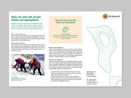 Die Flyer-Vorlage ist im DIN lang Format 105x210 mm angelegt. Ausnahmen bilden hierbei die Flyer in der Word-Umsetzung. Diese orientieren sich am Format DIN A4. Bei den Flyern ist die Art der Faltung bei der Erstellung mit zu berücksichtigen. Flyer mit einer Zick-Zack-Falz weisen eine andere Seitenreihenfolge auf als Flyer mit einer Wickelfalz.